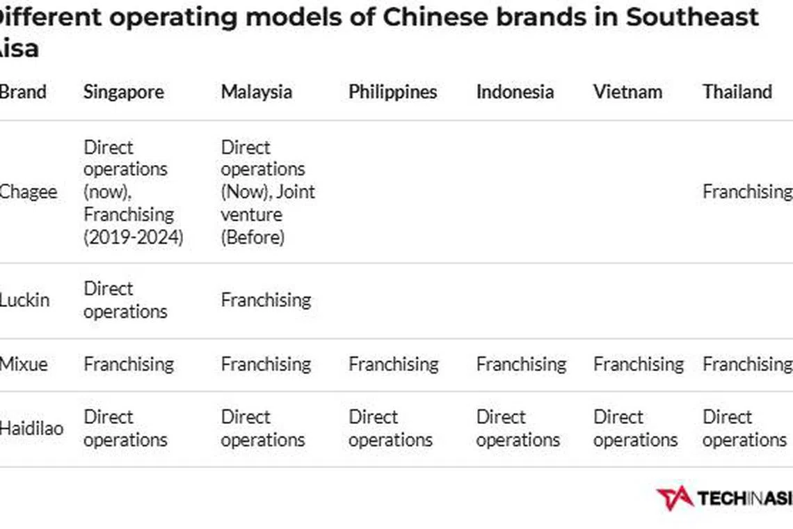 For example, Luckin and Chagee have maintained both franchising and direct operations models in the region – different in each country.