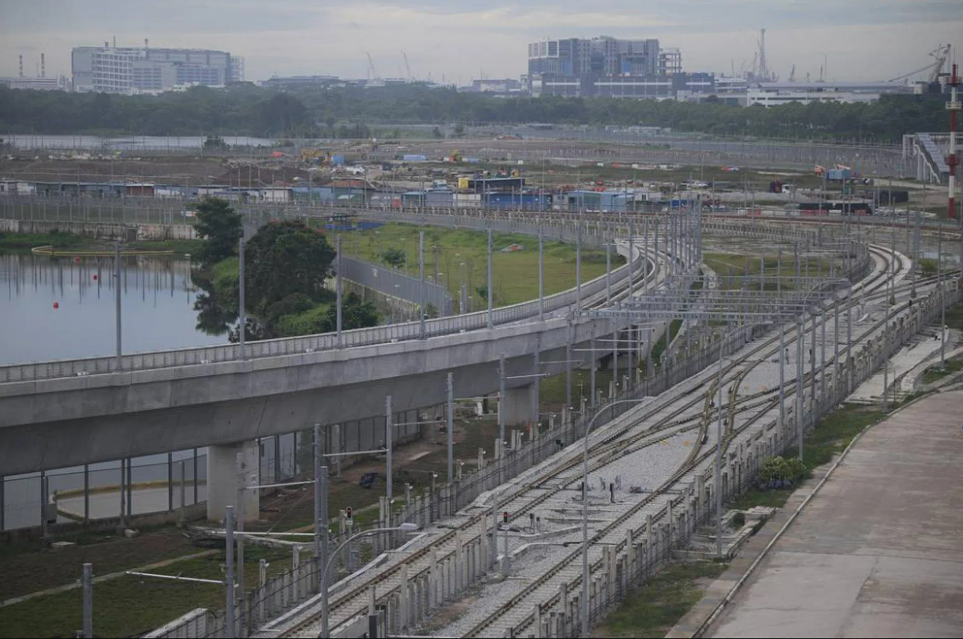 Once a viaduct link between the East-West Line’s Tuas West Extension and SRTC is completed in 2029, trains can enter the centre via the extension. Before that, the trains will be transported into the centre by land via trailers.